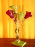 L' important dans toute création est d'avoir l' idée. Le reste n' est que du travail, de la technique. Le travail manuel du verre acrylique, communément appelé "plexi", est passionnant à bien des égards et permet de créer une multitude d' objets, de luminaires sous toutes ses formes:du lustre de théatre à la lampe de chevet, du vide poche au seau à champagne.